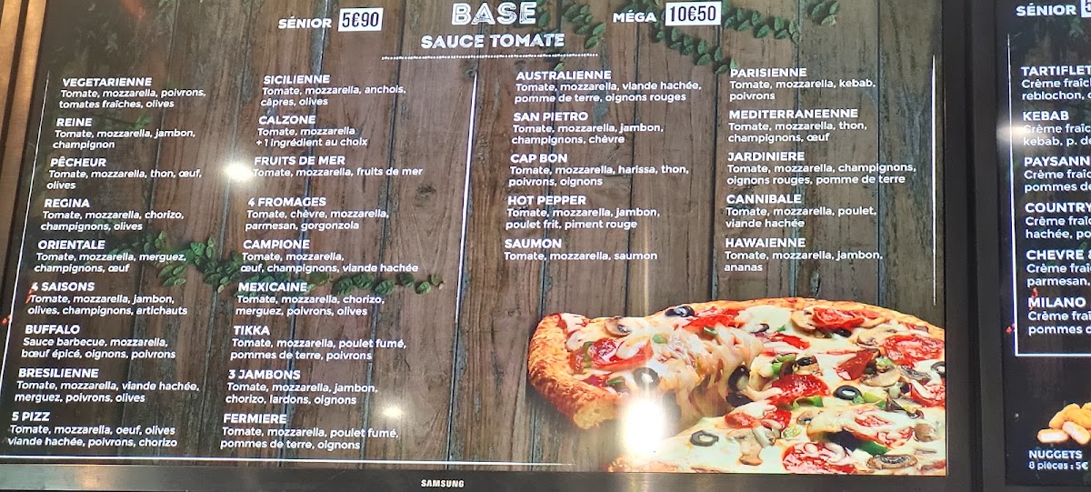 Situated in the bustling Place De La Gare in Villemomble, IDF, 5PIZZ offers a diverse selection of pizzas and Tex-Mex dishes that are sure to tantalize your taste buds.